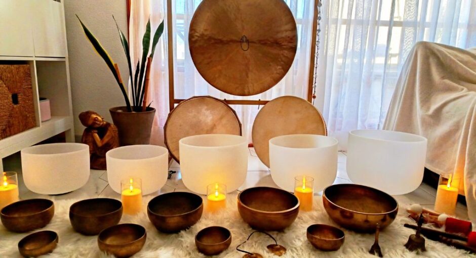 Los baños de sonido son una experiencia de armonización y relajación profunda a través de la vibración de los cuencos tibetanos y de cuarzo, junto con otros instrumentos terapéuticos.
